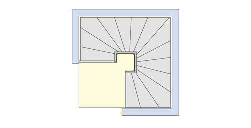 Diese Grundrissart ist in der Regel deutlich besser zu begehen als eine Spindeltreppe auf gleichem Raum. D. h. sie ist vor allem dort zweckmäßig, wo man nicht, z. B. aus optischen Gründen, eine Treppenspindel haben will, dafür aber eine besonders gute Begehbarkeit.